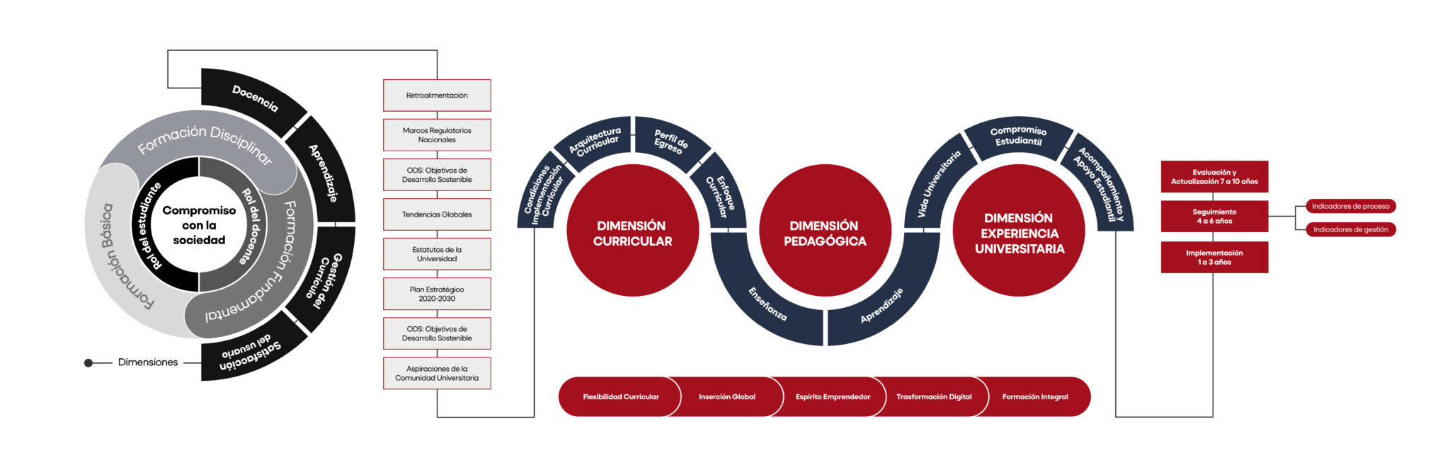 En este proceso de transformación educativa, el aseguramiento de la calidad desempeña un rol clave para garantizar la coherencia, consistencia y pertinencia de la formación impartida. La Universidad ha definido un sistema de monitoreo, evaluación y mejora continua que permite alinear el modelo educativo con los principios institucionales y las demandas del entorno. Este compromiso institucional se traduce en procesos sistemáticos que aseguran el logro de los aprendizajes esperados, la pertinencia de los perfiles de egreso y la participación activa de toda la comunidad universitaria en el fortalecimiento de una cultura de calidad orientada a la excelencia académica y a la formación de personas con alto sentido ético, crítico y transformador.